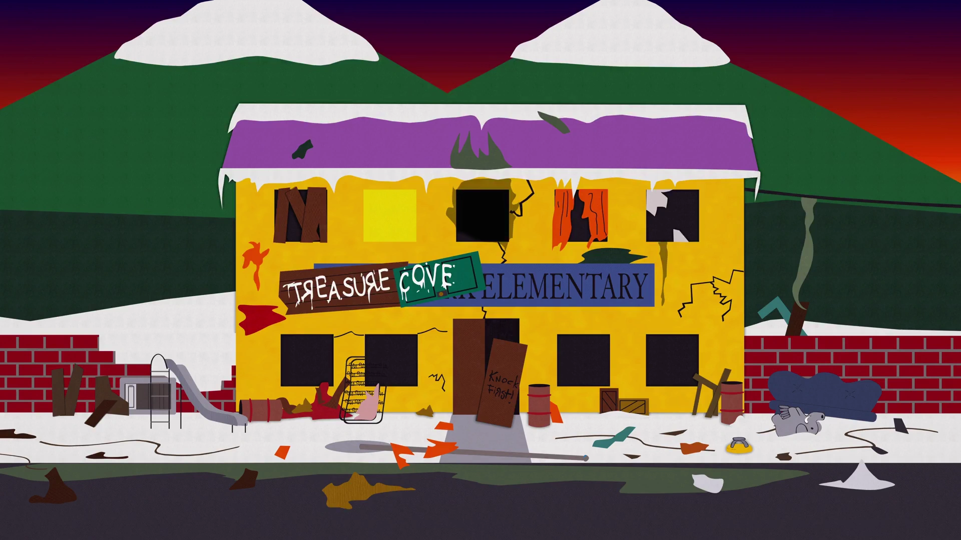 It contains South Park Elementary which is where Stan and Kyle ran the Town from. Unlike SmileyTown, Treasure Cove was in quite a bad condition.